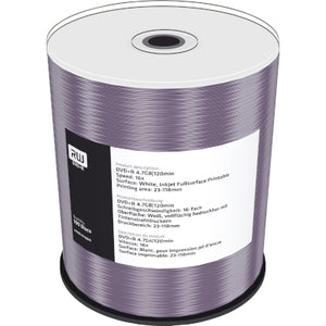 Ces DVD+R vierges enregistrables une seule fois de MediaRange offrent une capacité de 4,7 Go soit 120 minutes de vidéo et conviennent pour une vitesse d'écriture allant jusqu'à 16x. Ces disques vierges sont dotés d'un revêtement de surface blanc qui permet l'impression avec des imprimantes à jet d'encre.